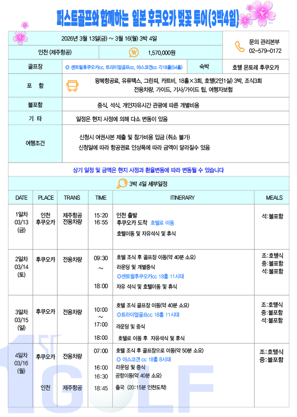 후쿠오카 54홀 벚꽃투어(마감)