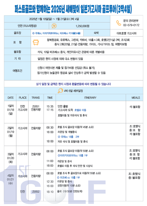 2026 새해맞이 일본 가고시마 골프투어(마감)